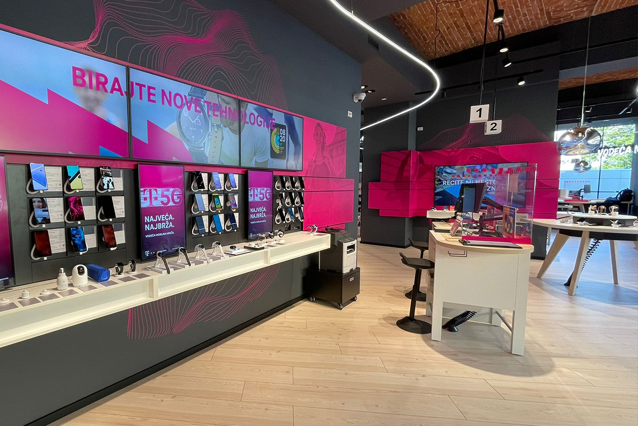 Das neu gestaltete Multimediazentrum T-Centar auf dem Zagreber Cvjetni trg-Platz überschreitet die Grenzen der Innenarchitektur und des Besuchererlebnisses. Neu ist der so genannte "grüne Trend", der sich in einer Fülle von Pflanzen zeigt, die 1,7 kg Sauerstoff pro Quadratmeter produzieren und 2,3 kg CO2 neutralisieren.